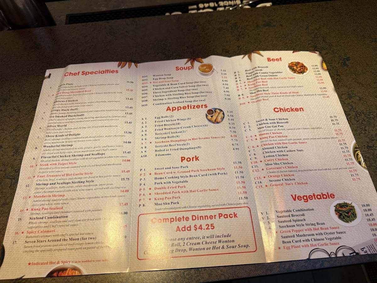 This menu is suitable for casual dining occasions where guests can enjoy a range of flavors from light starters and soups to hearty beef entrees. It can also accommodate quick orders and takeaway meals. The selection covers a balance of protein, vegetable, and rice-based dishes, catering to a typical Chinese restaurant experience.